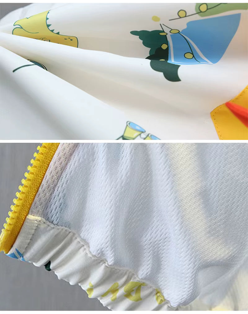 Dit vrolijke baby- en kinder windjack met dinosaurusprint is ideaal voor kleine avonturiers. De jas is licht van gewicht en perfect voor het voorjaar en frisse herfstdagen. Dankzij de comfortabele pasvorm kunnen baby’s en peuters vrij bewegen tijdens het spelen, wandelen of buiten ontdekken.
