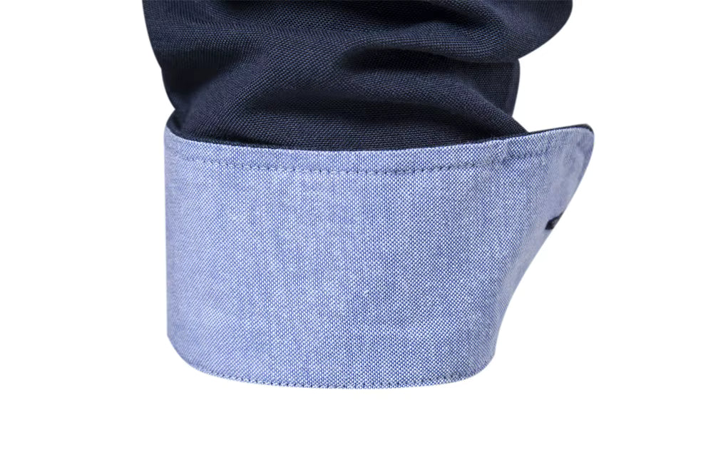 Gemaakt van een kwalitatieve katoen-polyester mix (broadcloth), voelt de stof zacht aan en behoudt het overhemd zijn vorm gedurende de dag. De klassieke omslagkraag en de enkele rij knopen zorgen voor een nette, verzorgde uitstraling. Draag het dichtgeknoopt voor een zakelijke look of combineer het open met opgerolde mouwen voor een meer ontspannen stijl.